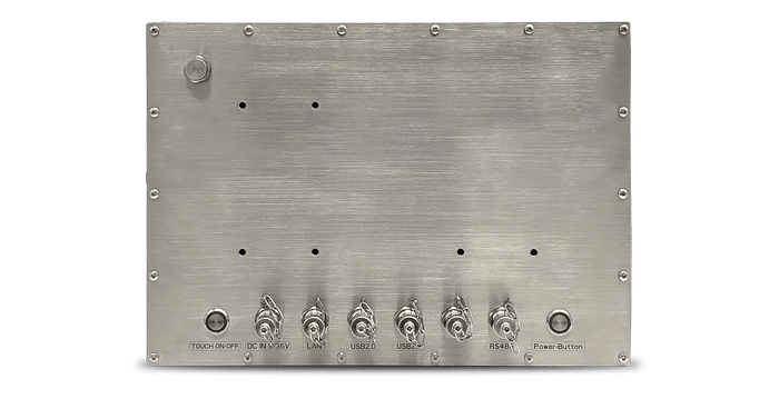 Защищенный панельный компьютер iROBO-5000-S121IP представляет собой моноблок (системный блок + монитор с емкостным сенсорным экраном), корпус которого изготовлен из нержавеющей стали.