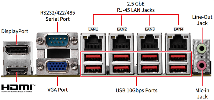 - 4× независимых сетевых порта Intel I226-LM (2.5 Гбит/с)