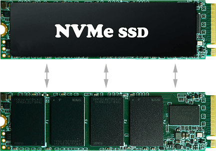 Пример накопителя M.2 SSD NVMe с демонстрацией чипов памяти под заводским стикером